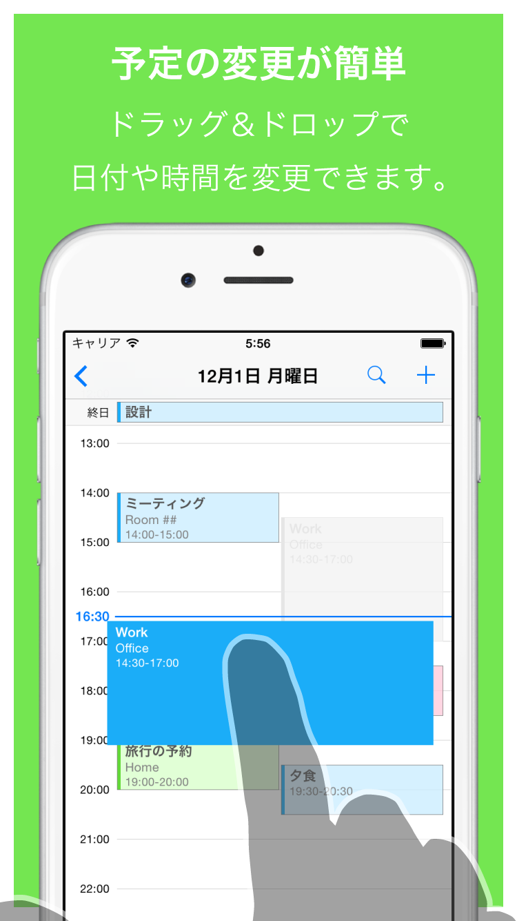 イベントを翌日に変更したい場合は、イベントを長押しして画面の右端にドラッグします。