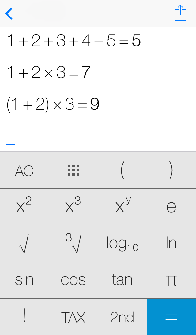 足し算、引き算とかけ算、割り算が混ざった式では注意が必要です。四則演算の優先順位に従って解きますので、一般的な電卓とは答えが違います。(iOSの純正「計算機」と、計算機+は同じ答えです。)